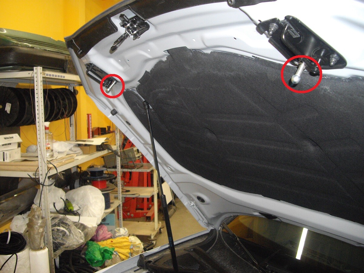 Подкапотное пространство Ауди А3 мы защитили, от преступного доступа, двумя, управляемыми иммобилайзером, электромеханическими замками капота с штырями, защищенными как от спиливания, так и от скручивания.
