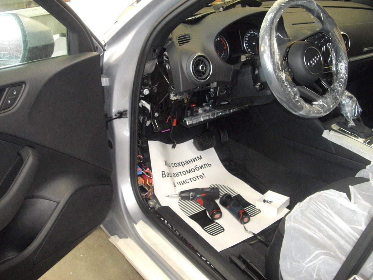Такой противоугонный комплекс можно считать базовым и способным уберечь эту Ауди А3 от быстрого угона.