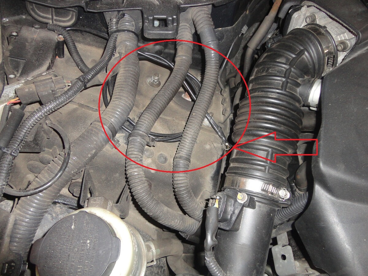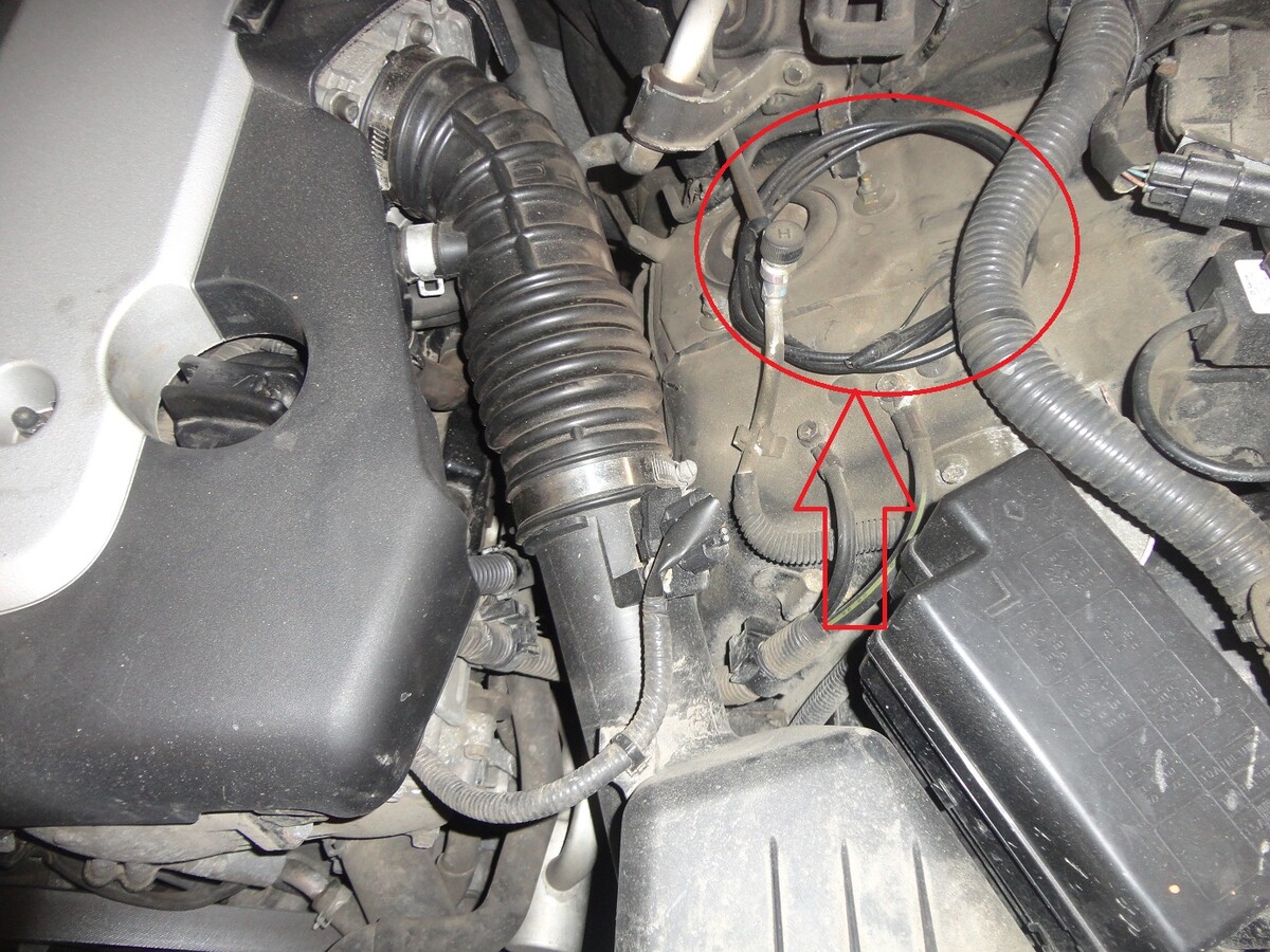 Но интересно и другое. В таких замках предусмотрена система аварийного открытия - аварийные тросы. Их, обычно, прячут в укромных местах подкапотного пространства, чтобы осложнить угонщикам доступ к ним. Но в данном случае установщики явно перестарались, положив эти тросы прямо на арки в моторном отсеке.