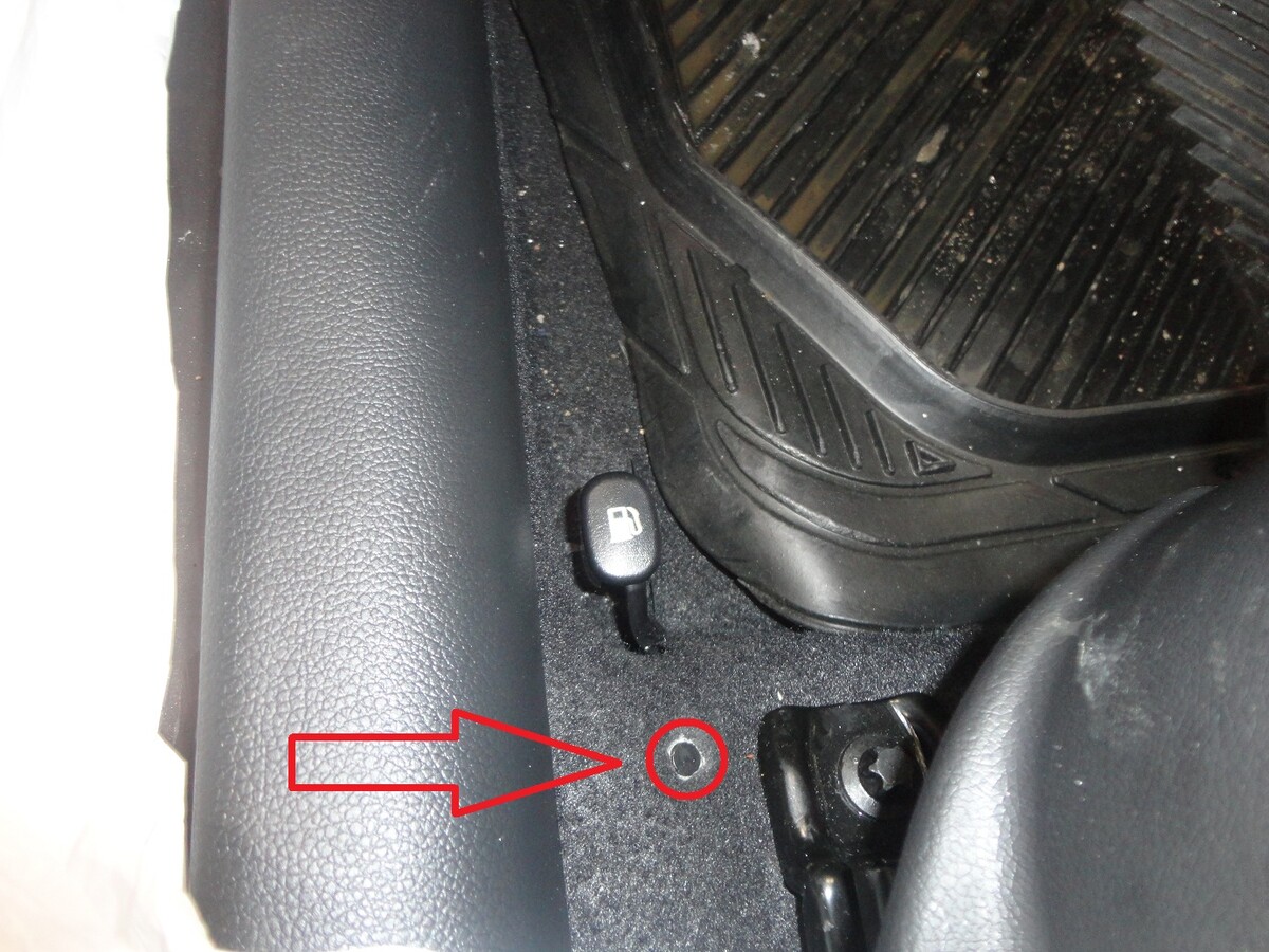 Так называемая "секретка" была установлена на самом видном месте рядом с ручкой открывания лючка бензобака.