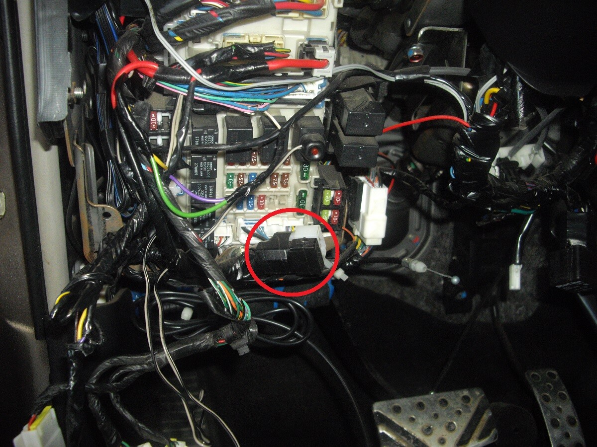 Это не составило труда, т.к. все элементы автосигнализации, как обычно, находились в привычных и наиболее популярных местах: блок – за щитком приборов, реле и предохранители – над педальным узлом Митсубиси Паджеро 4.