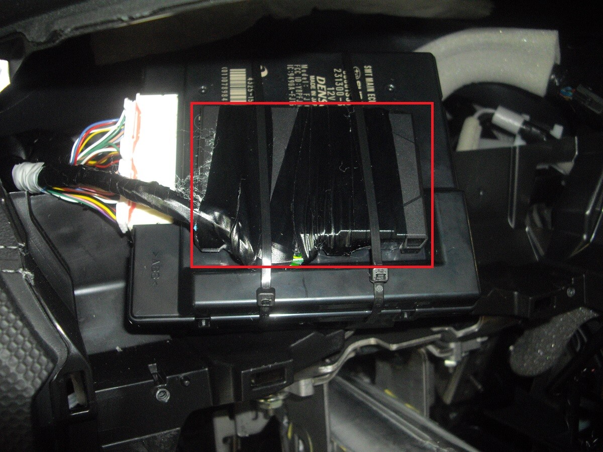 На этом кроссовере был установлен простейший иммобилайзер. Конечно, сам по себе он бы мог обеспечить хоть минимальную, но, все же, защиту от угона. Но только тогда, когда его установили бы максимально скрыто. Но тут все было иначе.