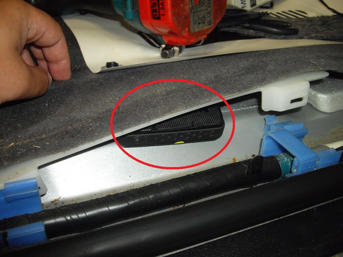 Маяк находился в легкодоступном месте, да и был обнаружен нами за считанные секунды, т.к. ковровое покрытие под ногами переднего пассажира немного топорщилось из-за такого монтажа.