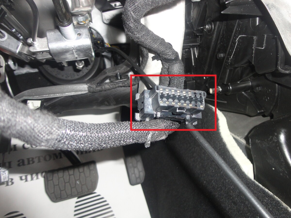 Далее мы, программно, разорвали связь между, расположенным в районе рулевой колонки автомобиля, диагностическим разъемом и электронными блоками управления, лишив, таким образом, угонщиков возможности подключения к автомобилю.