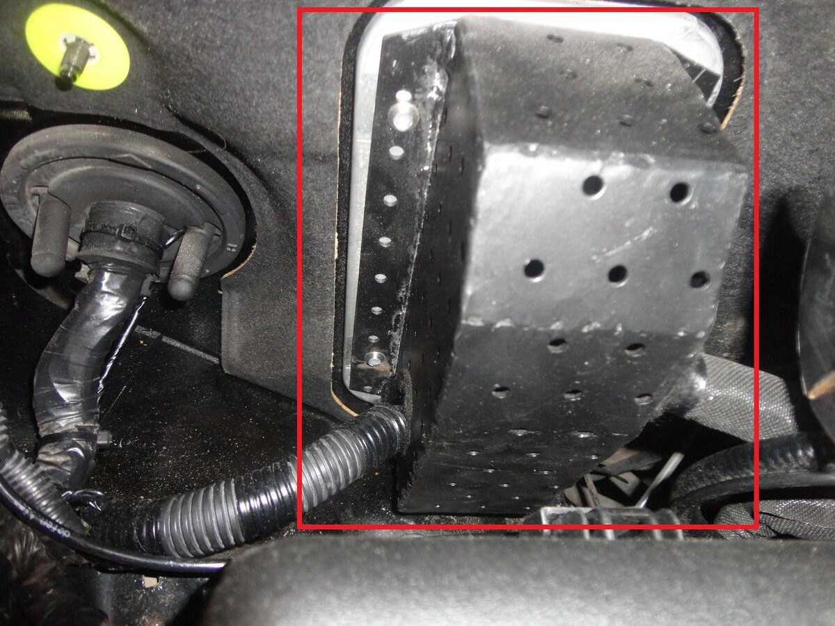 После этого мы переместились под капот, где защитили электронный блок управления двигателем от нештатного подключения и от его подмены. Для этого мы изготовили специальный стальной сейф из высокопрочной стали и спрятали в него сам электронный блок.