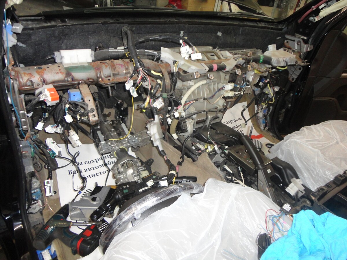 Для максимально скрытой установки головного блока сигналайзера мы основательно разобрали салон автомобиля, глубоко и надежно спрятав его в кокпите.