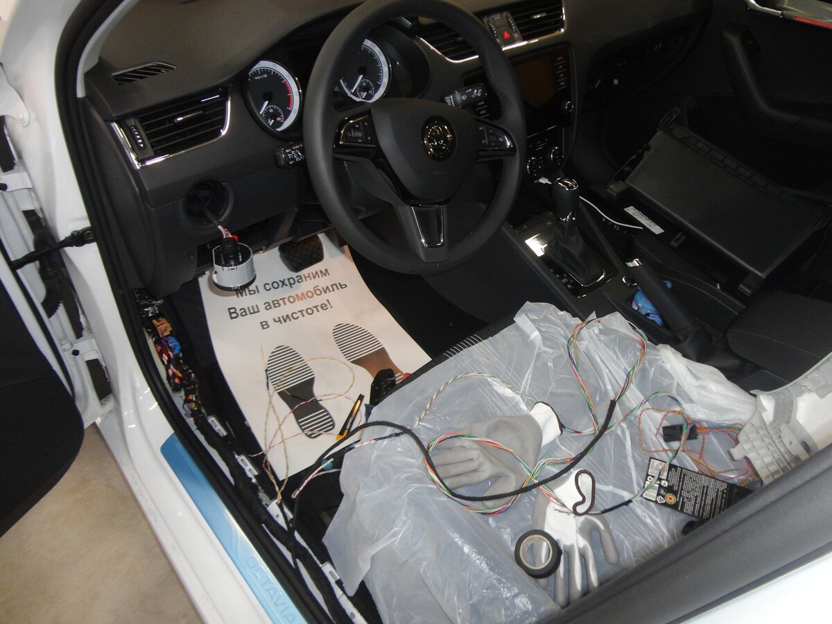 На примере этого Шкода Октавия мы хотим ознакомить вас с нашим видением одного из возможных базовых противоугонных комплексов для такого автомобиля.