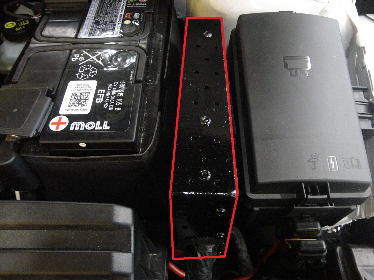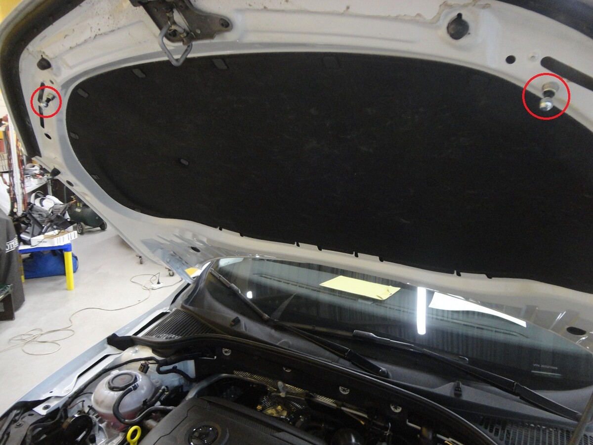 Затем мы установили два электромеханических замка капота. Штыри этих замков мы оснастили защитой от спиливания и от скручивания, а контролируются эти замки сигналайзером.