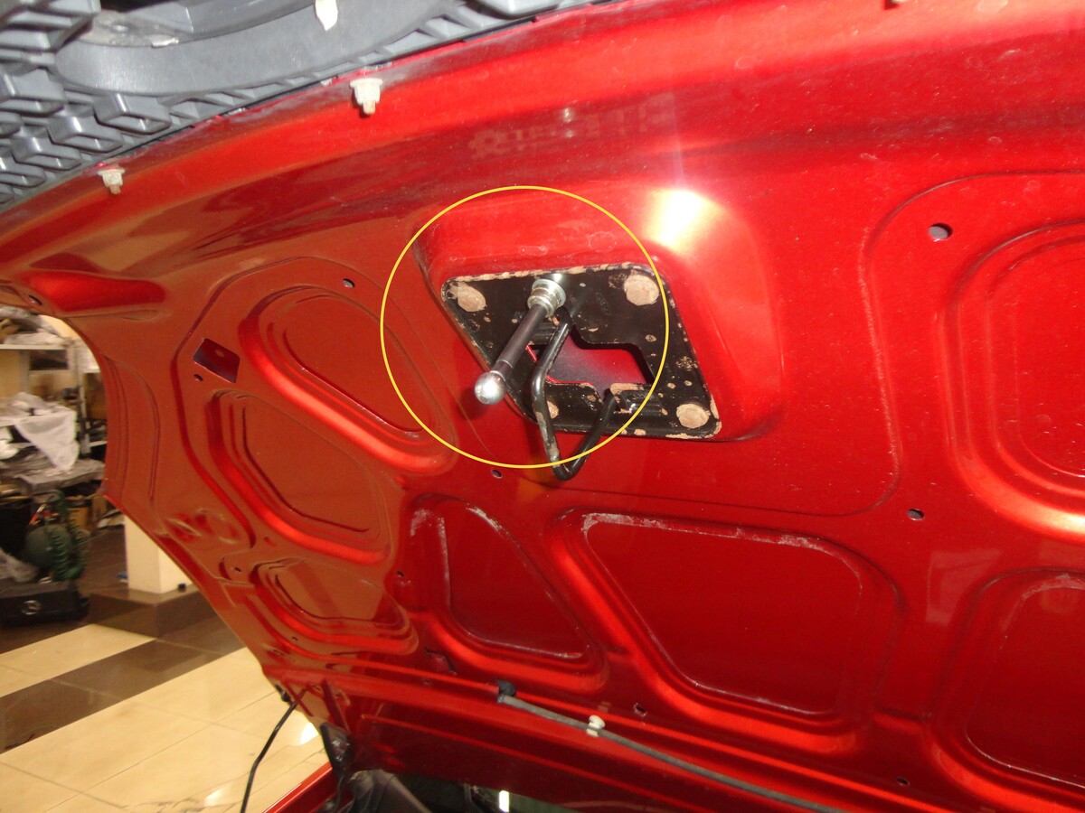 Сначала мы пристально изучили конструктивные особенности подкапотного пространства, которое необходимо надёжно защитить от чужих рук и планомерно пришли к выбору и установке электромеханического замка капота с «антиспилами» и «противоскрутками» в том виде, как изображено на фото.